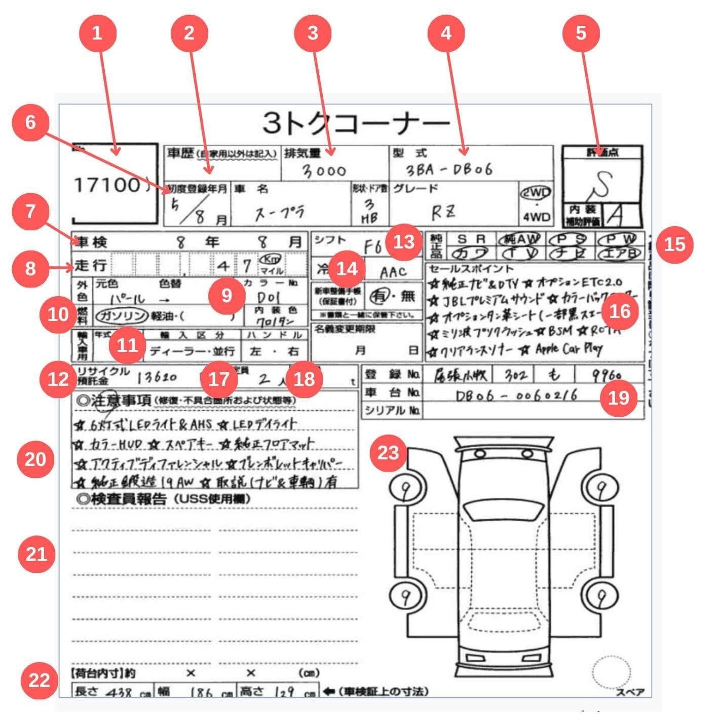 Every auctioned vehicle in Japan comes with a detailed inspection report known as an auction sheet. These sheets are created by certified inspectors and provide an honest assessment of the vehicle’s condition.